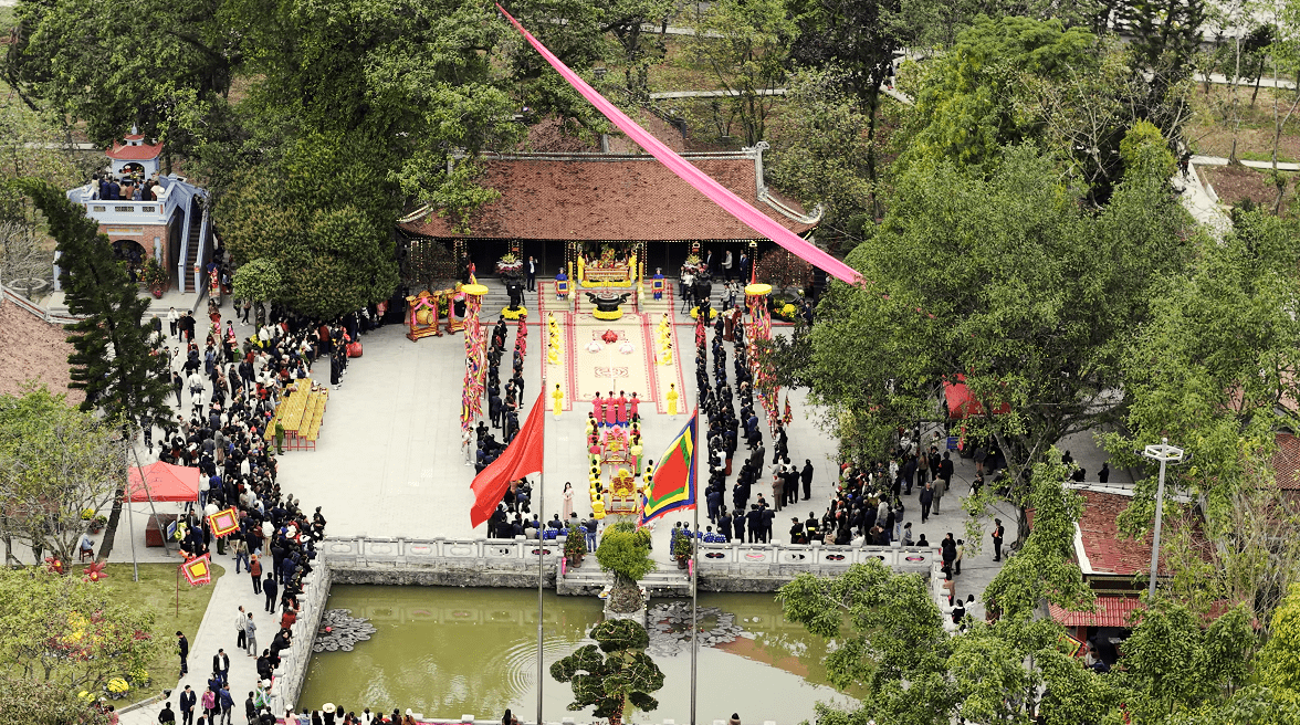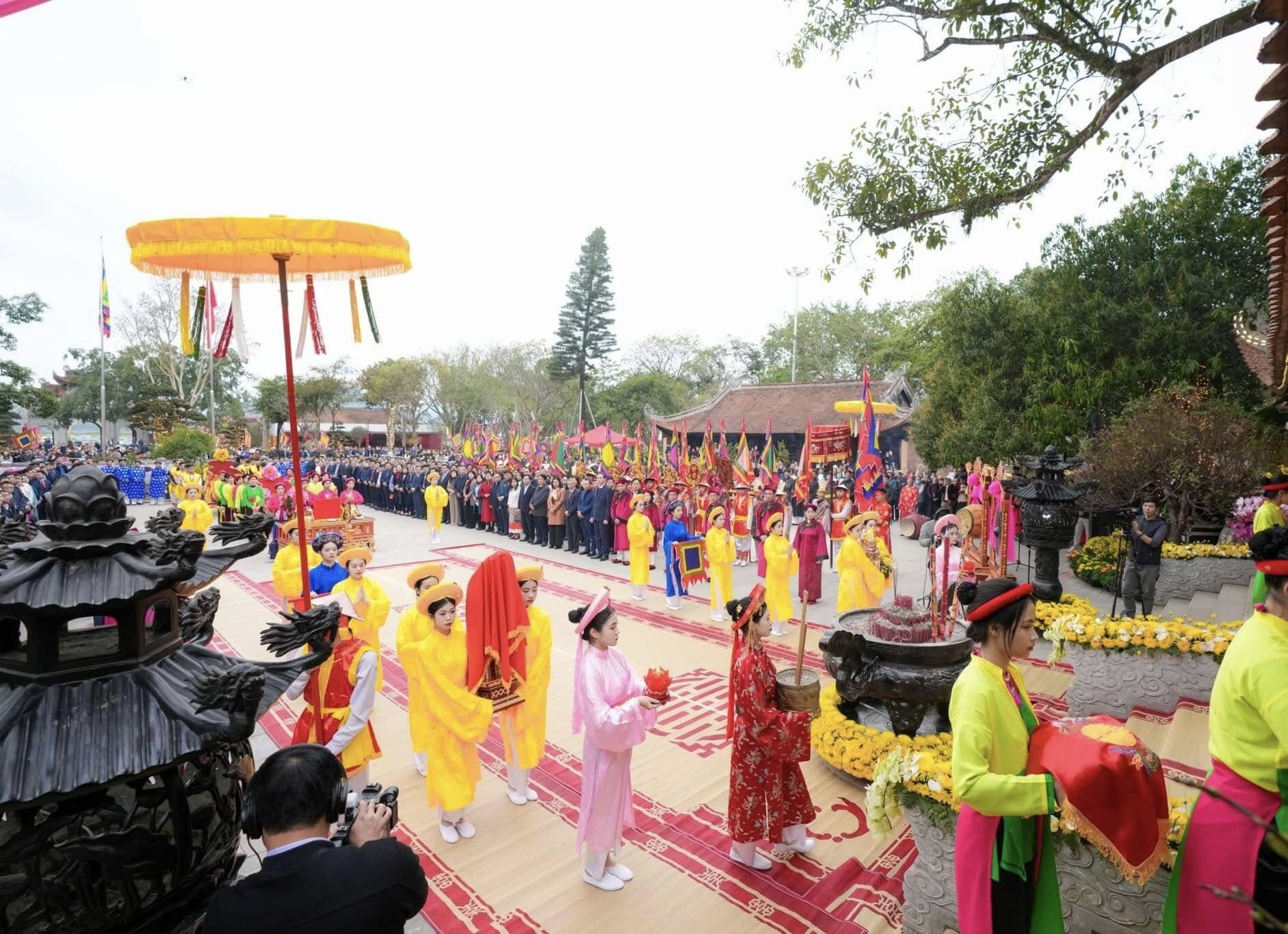 Trong không khí ấm áp đầu xuân, dưới mái đền cổ kính, đội tế nữ quan thực hiện các nghi lễ gồm: dâng hương, hoa, trà, rượu, quả, đọc chúc văn và hóa chúc. Các nữ quan mặc áo dài truyền thống, đầu đội khăn kim tuyến, thắt dải lụa, chân đi hài; riêng chủ tế nữ mặc lễ phục màu đỏ. Mọi động tác được thực hiện uyển chuyển, đồng bộ theo tiếng nhạc hội, thể hiện sự chuẩn mực, nghiêm trang và lòng thành kính đối với Tổ Mẫu Âu Cơ.